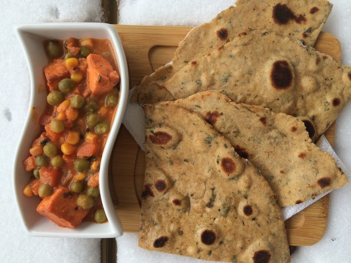 10. Add the paneer cubes and peas and let cookabout 6 minutes and turn off the flame.Serve with roti or naan.If you wish you can add 2 tablespoons of cream in the last step to make the gravy richer.